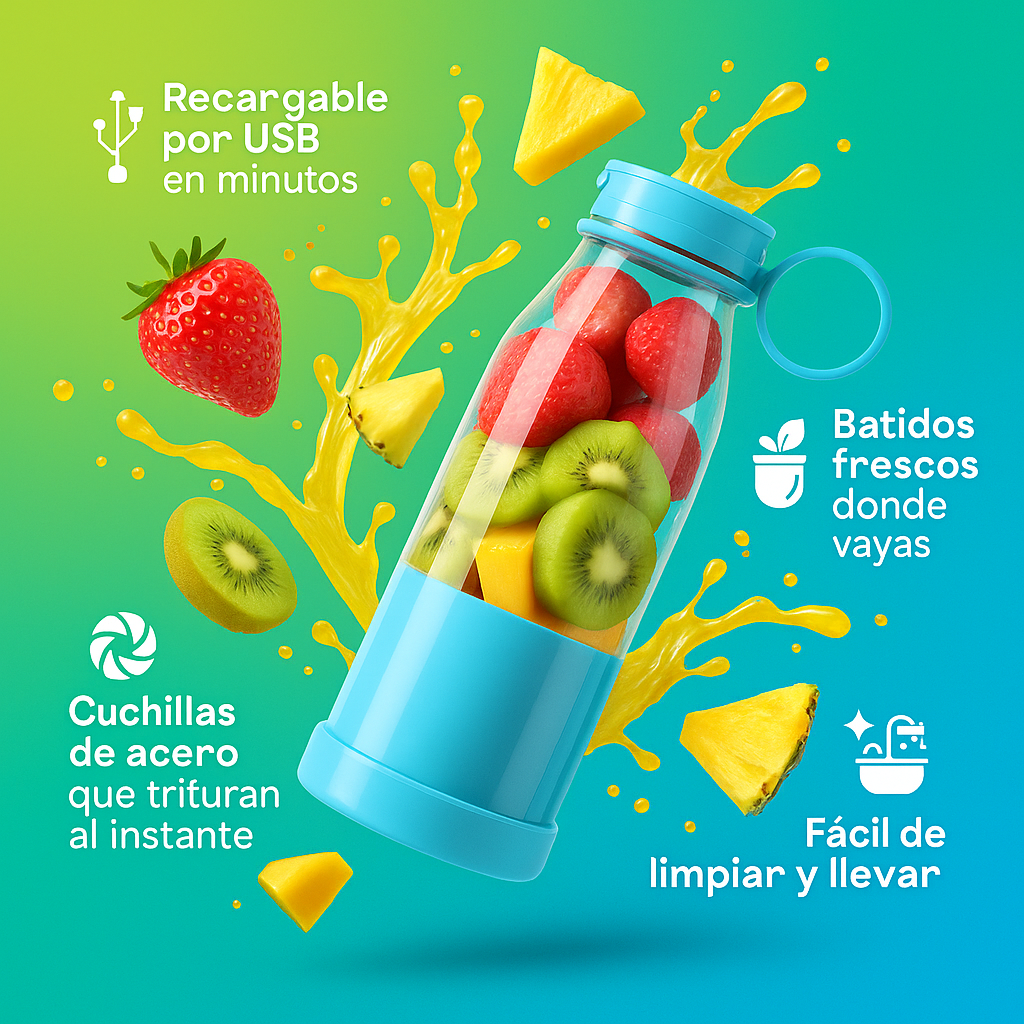 La batidora portátil perfecta para preparar tus smoothies favoritos en segundos, ¡sin cables y sin límites!